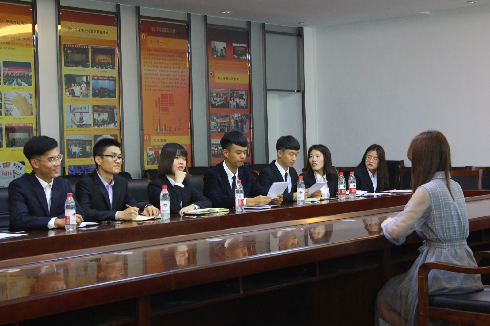 5月6日上午,院团委于北校区学院一楼会议室召开部长以上干部竞选会议,团委书记蔡骞、副书记王之琪,第七届员工会干部出席并担任评审委员。面试内容为自我介绍、个人总结、对所竞选职务的工作设想及其对员工会建设的可行方案。现场发言精彩不断,互动热烈。7日晚,干部拟用人员确定,蔡骞与他们亲切交谈,并交换了关于员工会建设的意见。